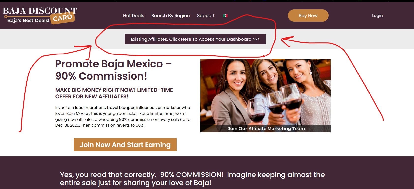 "Existing Affiliates, Click Here to Access Your Dashboard."