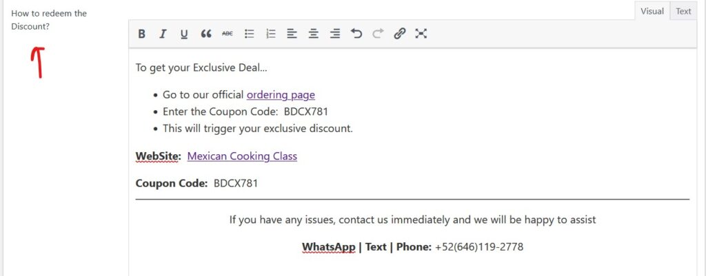 If you sell products or services online, you’ll need to provide clear, specific instructions on how customers can redeem their discount.